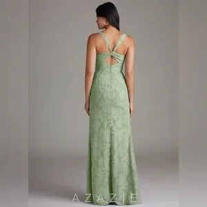 Azazie Mero Dusty Sage Sheath Pleated Floral Burnout Dress Size A6