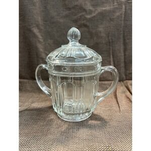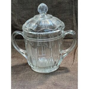 Hazel Atlas Clear Glass 2 Handle Sugar Bowl w/Lid ~ Vintage 1930s (1656)