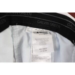 The Noah Galvin Green Men's Golf Pants in white, size 30x30, are designed for optimal performance on the golf course. Made with 100% polyester, these pants feature a woven fabric with UV protection, stretch, moisture-wicking properties, and are wrinkle-resistant. The breathable design makes them perfect for summer, fall, and spring seasons. The pants have a zip and button closure, belt loops, and a straight leg style for a comfortable fit. With embroidered logo accents, these khaki-style pants are machine washable and made in Portugal, catering to the needs of the modern golfer.