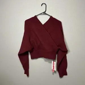 Cider Burgundy Wrap Crop Sweater NWT Size Large Ribbed Knit