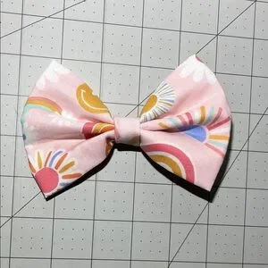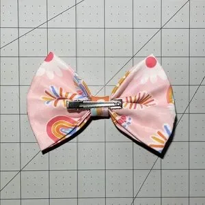 Brighten up your child's outfit with this charming pink rainbow hair bow. Perfect for adding a splash of color to any look.
