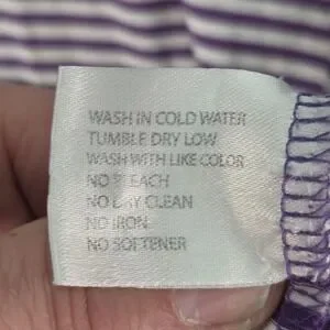 Care: Wash in cold water, tumble dry low, wash with like colors, do not bleach, do not dry clean, do not iron, and do not use fabric softener, following the interior care label.