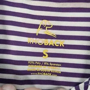 Rhoback Polo Shirt Mens Small Purple White Striped Performance Golf Stretch