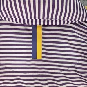 Color: Purple and white micro stripe pattern with yellow accent details.