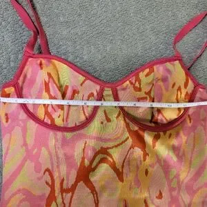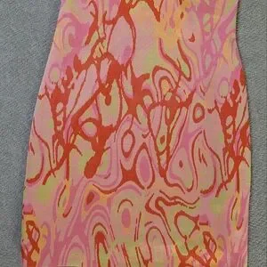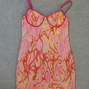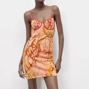 ZARA Pink Orange Abstract Slip Mini Dress Y2K Psychedelic Bodycon Festival - M