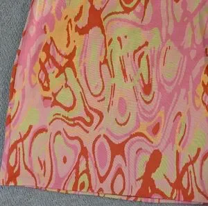 Super cute ZARA abstract print mini dress in vibrant pink, orange, and yellow tones. This body-hugging slip dress has a psychedelic swirl pattern that gives major Y2K / retro 70s energy.