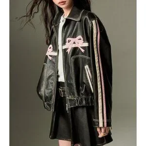 Vintage Look and Feel: With its classic vintage leather jacket look and feel, this jacket adds instant flair to any outfit. Bow jacket. Bow aesthetic.