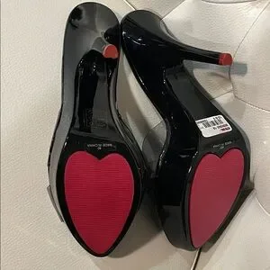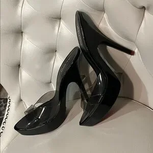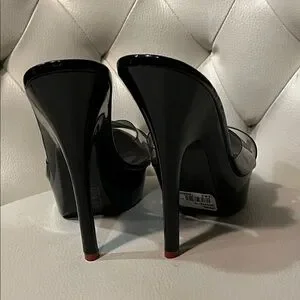 Chic black heels with clear straps. Sleek and modern design. Ideal for any stylish outing.