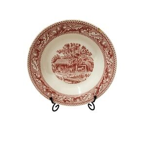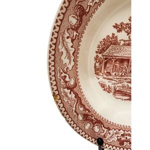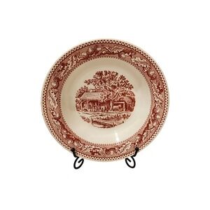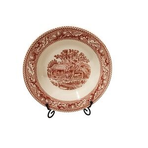 Keywords: Royal Staffordshire Tonquin, Red Transferware Bowl, Vintage Bowl Set, Countryside Scene, Scenic Bowl, Farmhouse Decor, Collectible Bowls, Vintage Dinnerware, Tonquin Red, Decorative Bowl, Retro Kitchen, Serving Bowl, Oak Leaf Border
