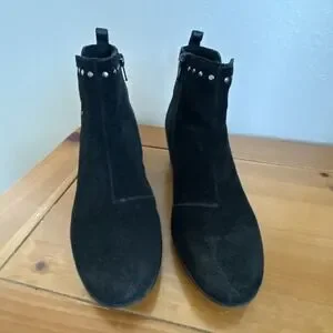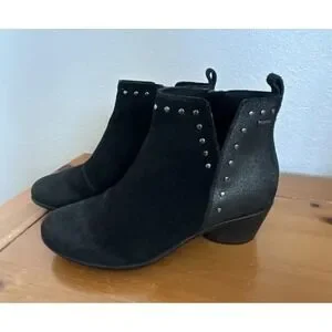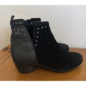 ROMIKA Black Daisy 01 Waterproof Suede/Leather Block Heel Booties Size 8.5 NEW