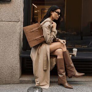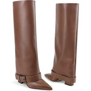 These Brown Knee High Boots for Women feature a stylish fold-over design, adding flair to your fall wardrobe.
