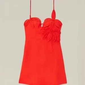 Embrace the vibrant essence of summer with the Red 3D Flower Bodice Mini Dress. This radiant piece showcases a mesmerizing asymmetrical neckline adorned with intricate 3D floral appliqué that adds a touch of whimsical charm. The warm red hue and sleek silhouette combine to create an enchantingly playful yet elegantly sophisticated statement. A true reflection of joy and femininity, this dress is a celebration of bold expression.
