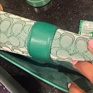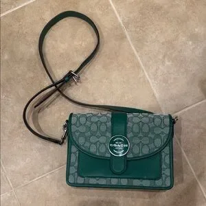 Coach Signature Green Jacquard Flap Crossbody Bag