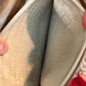 Elegant CHANEL wallet with quilted design. Features metallic leather and iconic logo.
