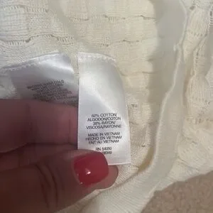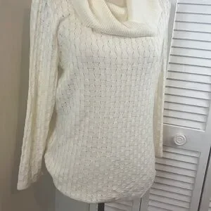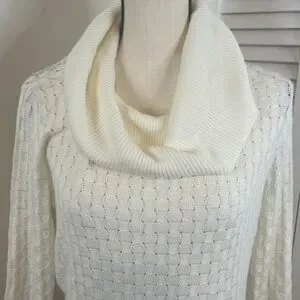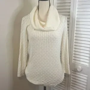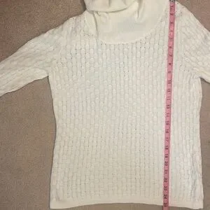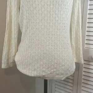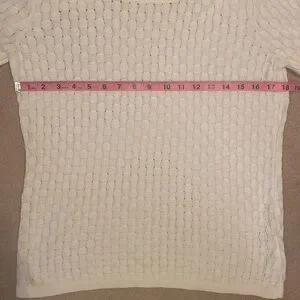 NWOT. Never worn and no flaws! This is a lightweight cable knit, not very heavy. Soft and comfortable! Perfect to pair with your favorite denim jeans. Please look at photos for all details and measurements. More measurements upon request. Any questions? Please leave them in the comments below and I will get back to you ASAP. I always ship within 1-2 business days. All items come from a clean, smoke, and pet free home! Thanks for looking and please ‘Bundle and Save!’ I give great discounts on all Bundles!