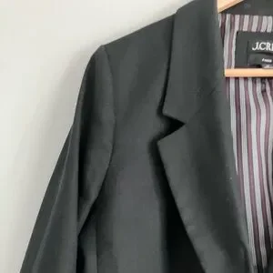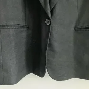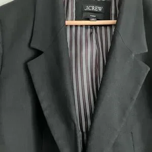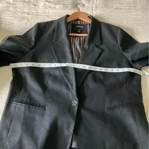 This classic black blazer from J.Crew is crafted from a lightweight linen blend, offering a breathable yet polished feel that transitions effortlessly from work to weekend. Designed with a notched lapel, single-button front, and a subtle tailored fit, it’s perfect for layering over blouses or tees. The linen-blend fabric gives it a relaxed drape while maintaining a refined silhouette.
