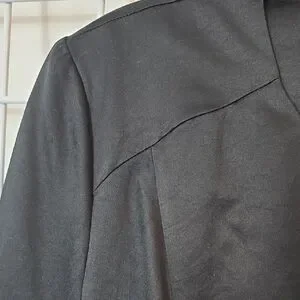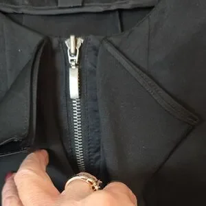 StylishINC International concepts black blouse with front zipper and ruffle.