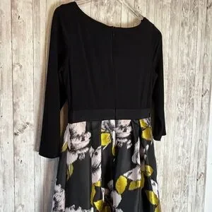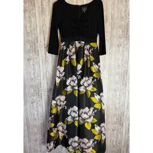 Adrianna Papell Formal Cocktail Dress Black Floral Ball Gown Skirt Size 6