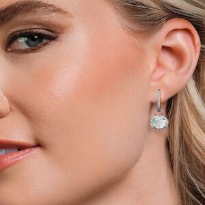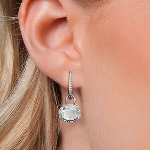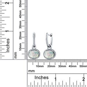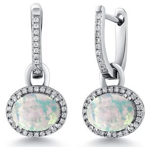 925 Sterling Silver with 2.04 Cttw White Opal Oval Dangling French Lock Earrings