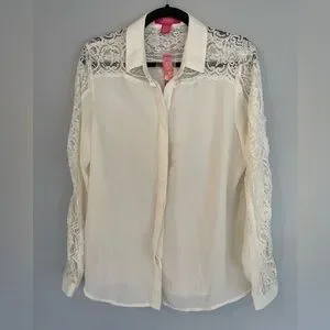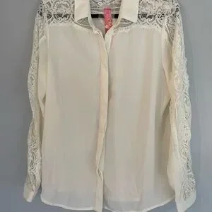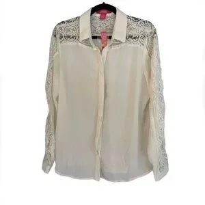 catherine Malandrino Long Sleeve Lace Button Down Blouse