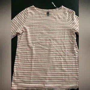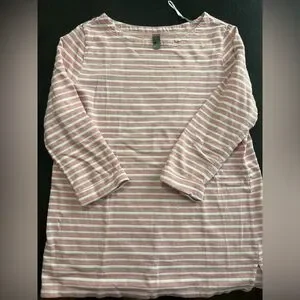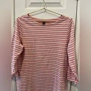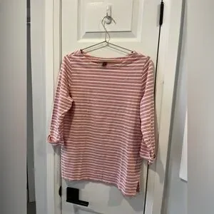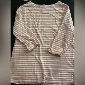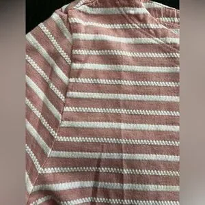 Denver Hayes Women Large Cotton Blend Pink and White 3/4 Stripped Shirt
