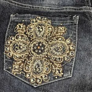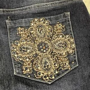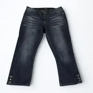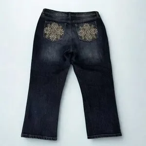 Nine West Jeans Womens 6 Capri Cropped Dark Wash Embellished Stretch Denim Boho