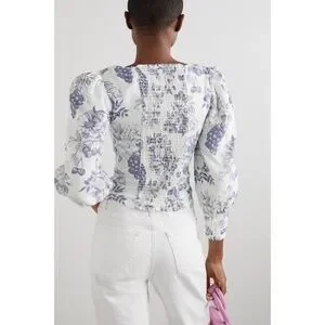 - Stretchy smocked back panel, 5 button cuffs, front lined, side zipper (starts from bottom), puff sleeves, square neck