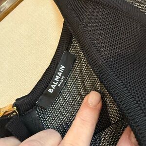 Balmain Black and White Houndstooth Mini Dress with Gold Buttons