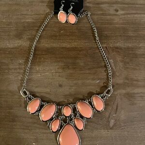 Paparazzi Silver and Coral Necklace Set