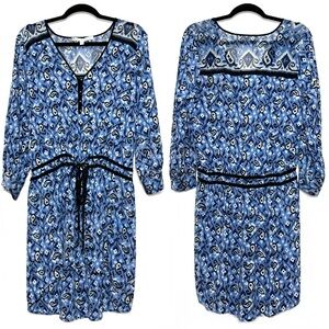 VERONICA BEARD Silk Boho Chic Paisley Ikat Print Long Sleeve Tie Waist Dress 10