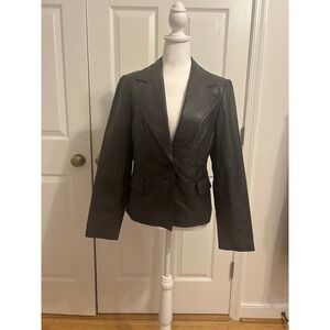 Vintage Kim Roger's Small chocolate brown leather Jacket coat blazer one button No flaws. Soft. EUC. Smoke Free Pet Free Home