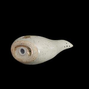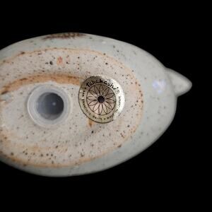 Charming vintage ceramic bird salt and pepper shaker set featuring a speckled stoneware-style glaze with hand-painted blue floral accents. Each bird has a smooth rounded form with stylized feather markings on the head and tail. Decorative and functional, these shakers make a great addition to farmhouse, rustic, or vintage kitchen décor collections.