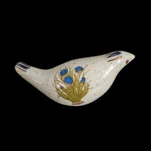 Vintage Ceramic Bird Salt Pepper Shakers Blue Floral Speckled Pottery Set