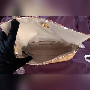 Perfect for any occasion, this stylish bag features shimmering sequins in a beautiful champagne pink color.