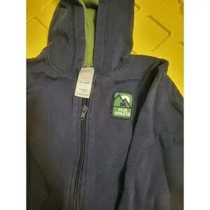 Old Navy Toddler Full-Zip Hoodie Navy Blue Peak Athletic Patch Green Lined Fleece Size 3T