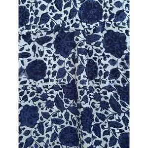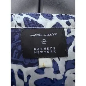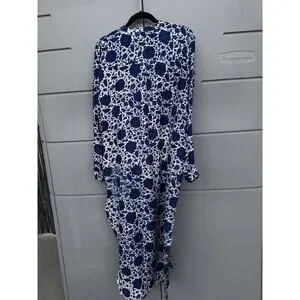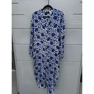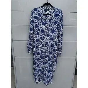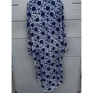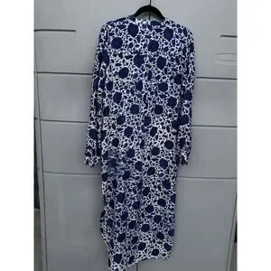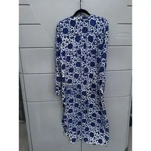 Natalie Martin Indigo Floral Hand-Dyed 100% Silk Kaftan Dress Sz L Double Slit