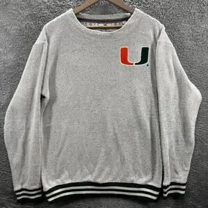 Show your Miami Hurricanes team pride with this Three Square by Royce Apparel Men's Sweatshirt in size 2XL. This gray pullover features an embroidered Miami Hurricanes "U" logo on the front, a classic crewneck design, and striped ribbed cuffs and hem for a vintage collegiate look. The soft cotton blend fabric provides warmth and comfort, making it perfect for game days, casual wear, or lounging.