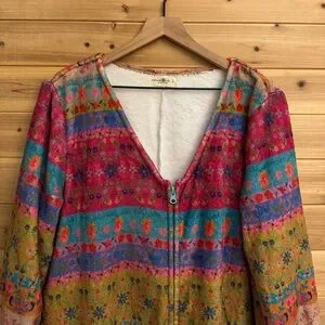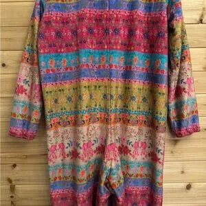 Natural Life Large Colorful Bohemian Fair Isle Print Fleece Zip Up One Piece PJ