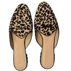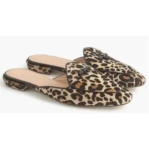 j crew leopard loafers, j crew calf hair mules, j crew loafer mules womens, j crew animal print flats, j crew leopard shoes, calf hair leopard loafers, womens loafer mules size 9, j crew slip on loafers, leopard print flats womens, j crew leather mules