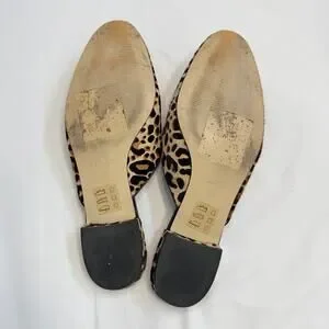 J.Crew Leopard Calf Hair Piped Loafer Mules Women’s Size 9 Leather Slip On Flats
