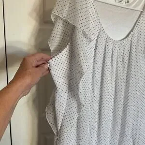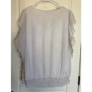 Cato White Polkadot Blouson/Ruffle Short Sleeve Lined Pull-Over Top Plus 18-20W