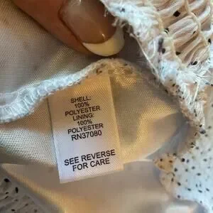 The Cato White Polka Dot Blouson is a stylish and versatile top suitable for various occasions such as travel, weddings, parties, and casual everyday wear. This pull-over blouse features a ruffle accent, short flutter sleeves, and a round neckline for a trendy look. Made of polyester material, this plus size 18-20W top is lined for added comfort and quality. Easy to care for with machine washable instructions, this blouse is a great addition to any woman's wardrobe for the summer, fall, and spring seasons.