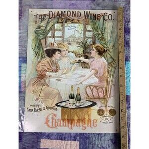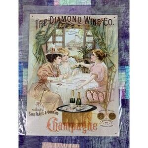 Champagne Metal Sign The Diamond Wine Company World’s Fair Decor Bar 16" x 12”
