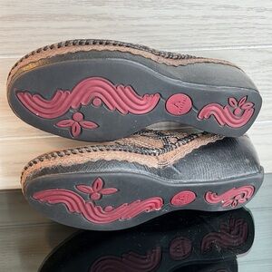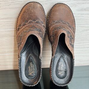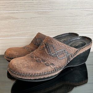 Clarks Artisan Brown Distressed Stich Wedge Mules Clogs 8.5M