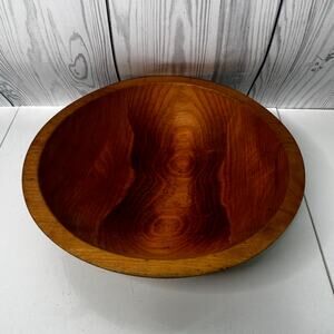 Vintage Bowl Wooden Handmade Thick Primitive Boho Cottage Heavy 10”