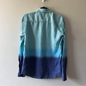 Bugatchi men’s Medium Uomo Ombre Blue Button up Shirt Long Sleeve Linen Blend
