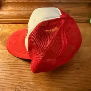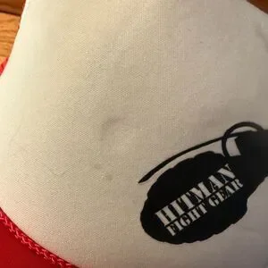 Stylish Hitman Fight Gear trucker hat featuring a bold grenade design. Vibrant red and white SnapBack.