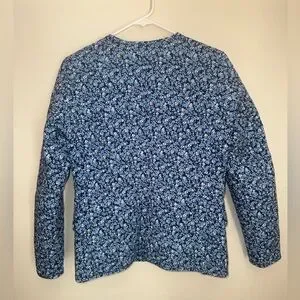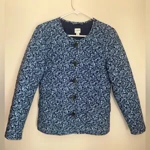 J. Crew blue floral quilted jacket in a women’s size 00. Jacket had a button front and front flap pockets. In excellent like new condition- no stains, holes, or flaws. Fast shipping!