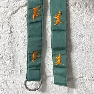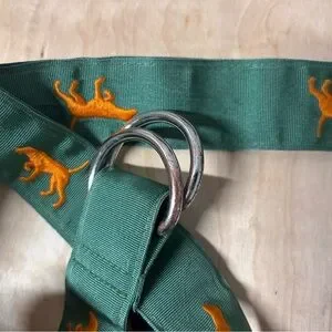 Vineyard Vines D-ring Green Belt with Orange Embroidered Dog Motifs Sz L EUC RARE!