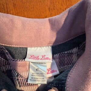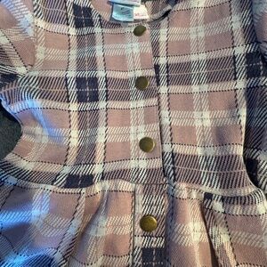Toddler girls size 4T denim jacket with embroidered flowers snap front with a short sleeve lilac and blue plaid dress. NEW WITH TAGS